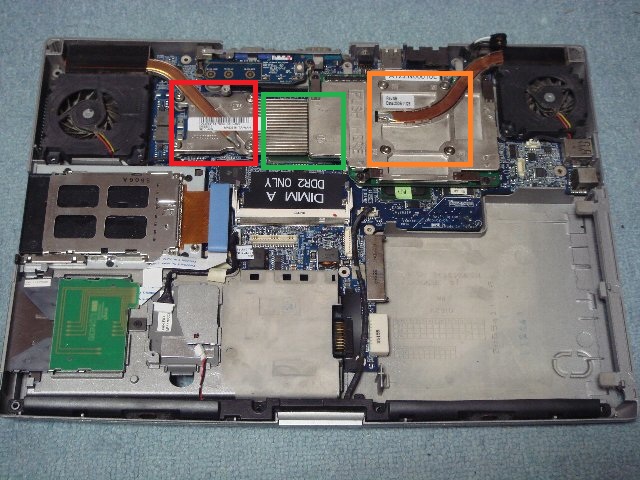 Qosmio F40もこんな感じですが、Qosmioはメモリのような接続方法だったのに対し、こちらは昔のCPUドーターボードのような感じですね。