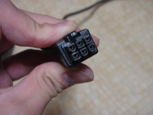 電源コネクタは、6端子ですね。PC内のPCIEx補助電源に似ているでしょうか。