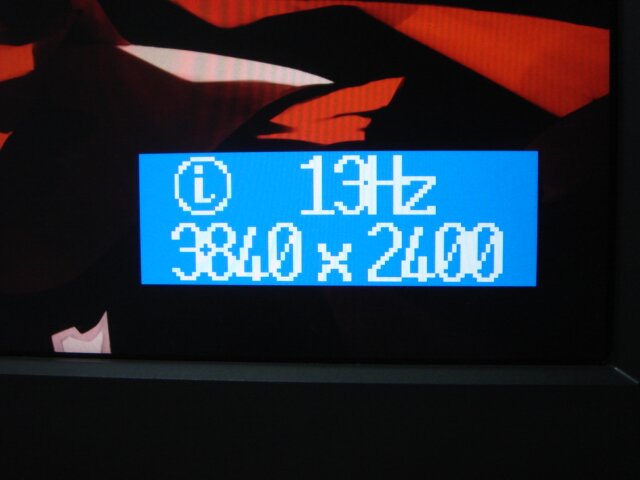 で行ってみます。デュアルリンクの帯域があれば、3840x2400@24Hzでは表示できるはずですね。