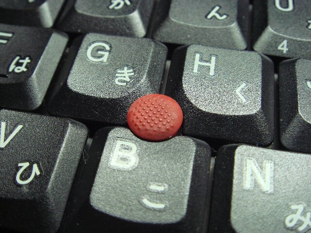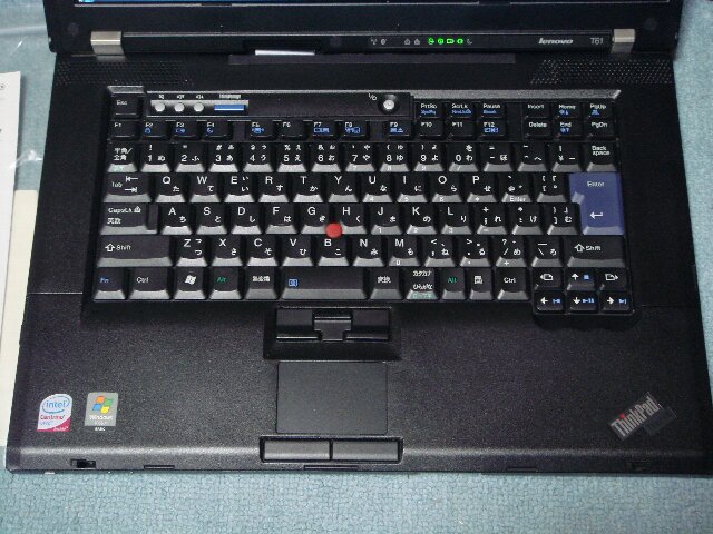 表のキーボード部です。毎回恒例の「赤ぽっち」ことトラックポイントが付いていますね。
