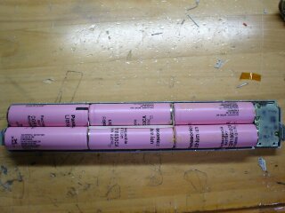 見たところ、18650セルが2直列の3並列のようです。