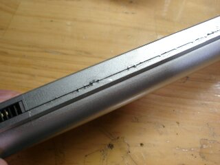 リブのバッテリーのように、雑巾絞りでは開きませんので、カッターで切れ目を入れつつ、ドライバーでこじりました。