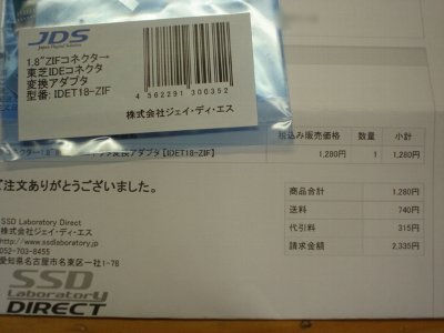 であることから、ZIFコネクタのHDDを変換アダプタ(ZIF/LIF-東芝PATA)を用いて交換をすることにしました。
