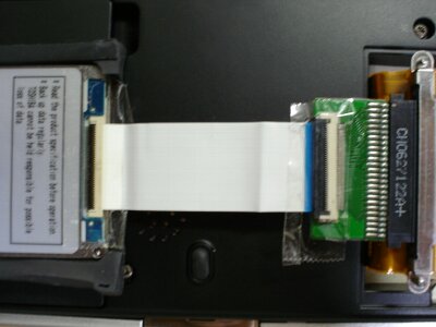 これで換装は終了です。が、Gigabeatの管理領域として300MBをCに割り当ててあるので、Fdiskとかで、パーティーションを切りなおしてやるといいと思います。あと、ZIFのコネクタが予想以上に外れやすいので、セロテープなどで固定するといいと思います。