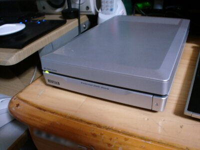 ちなみに、この機種は光学ドライブが装備されておらず、USBの外付けドライブでブートするのですが、今回は純正がなかったので、I/ODATAの外付けDVD-R/Wドライブ(写真下)でやってみたところ、すんなりいきました。
